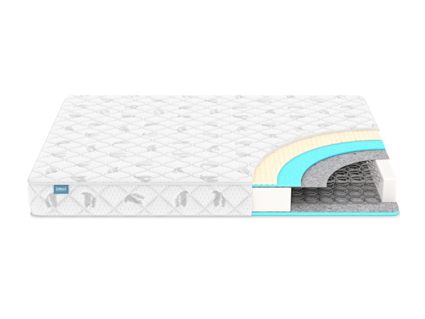 Модель базируется на блоке Боннель – это разновидность зависимого типа пружин. Здесь все элементы связаны между собой, что делает механизм своеобразным единым полотном. Когда на пружину приходится нагрузка, она вовлекает в работу и соседние элементы. В результате матрас получает более выраженную мягкость и отличную амортизацию.