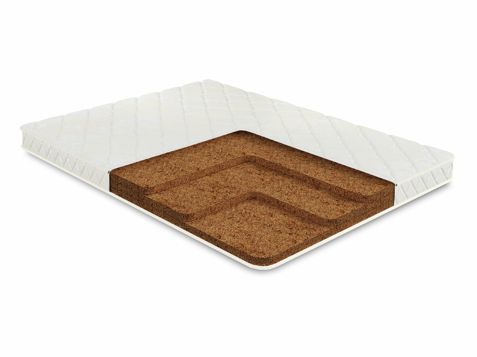 Высокий уровень жёсткости для изделия обеспечивает его наполнитель. Внутри матраса расположились три плиты кокосовой койры, которые сами по себе обладают естественной природной плотностью.