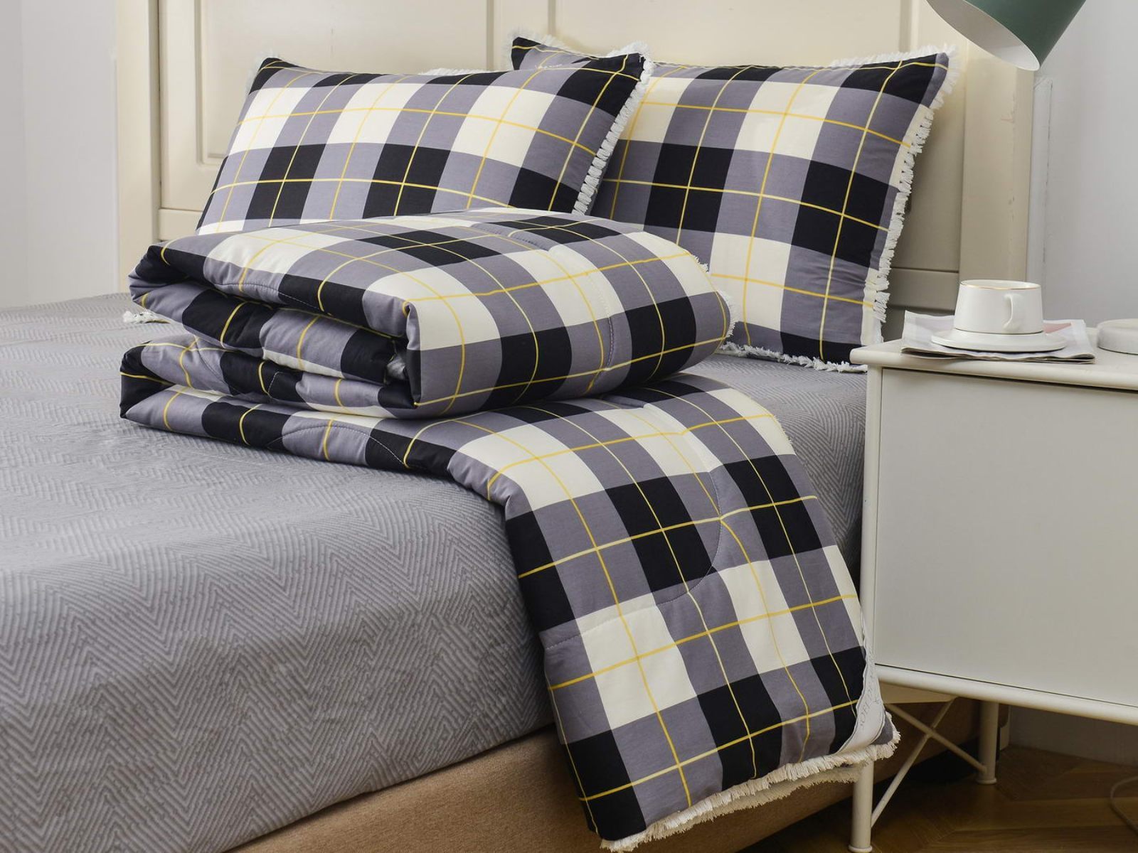 В комплекты комфортеров с одеялом Бернадетт входят наволочки, простыня и легкое всесезонное одеяло. Оцените это современное и очень удобное решение, которое идеально подходит тем, кто не любит возиться с пододеяльниками.