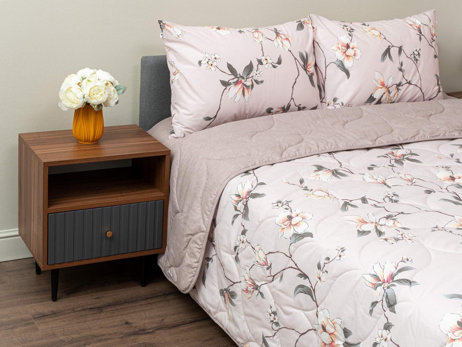 Комплект Мелвин легко стирается в обычной машине в бережном режиме и также легко гладится.