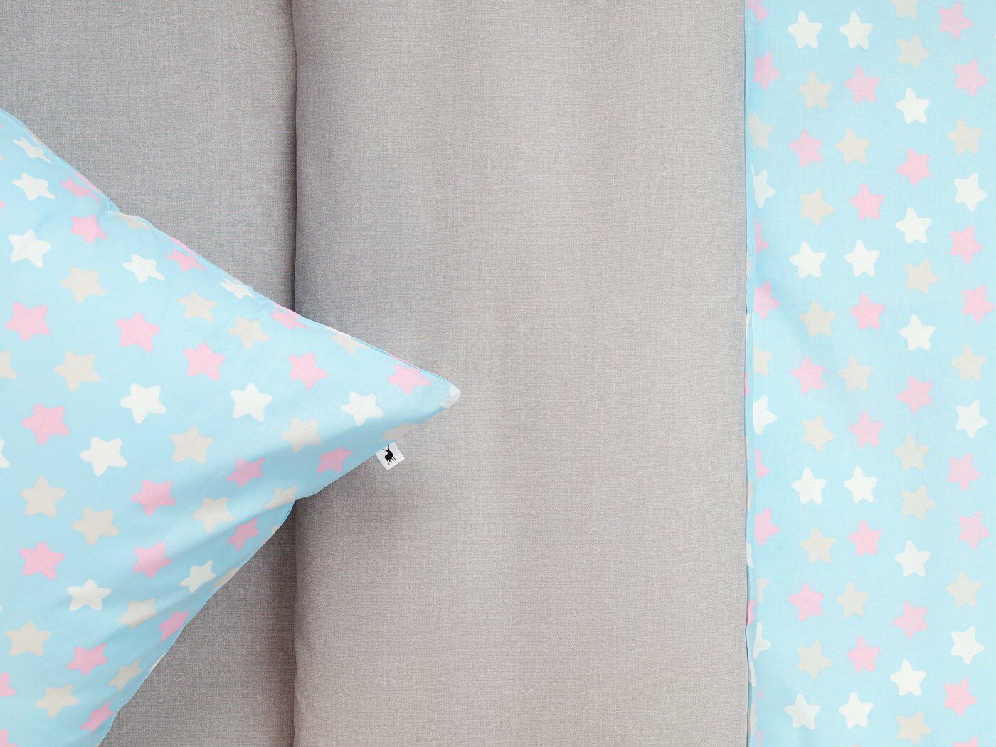 Пододеяльник –двусторонний: верх из ткани А (принтованная ткань), обратка из ткани В (однотонная рогожка), с потайной молнией.