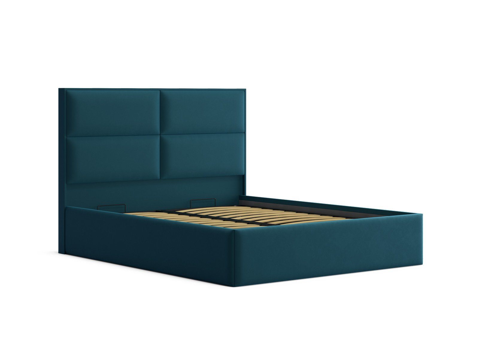 Мягкая кровать с обивкой из велюра.