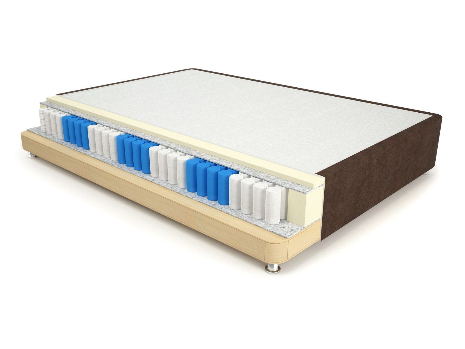 Очень стильный кроватный бокс спринг, который подойдет для тех, кому важен ортопедический эффект не только в матрасах. В основании box spring встроены пружины, что усиливает анатомический эффект матраса. Высота пружин 14 сантиметров, которые покрываются сверху двумя сантиметрами пенополиуретана.