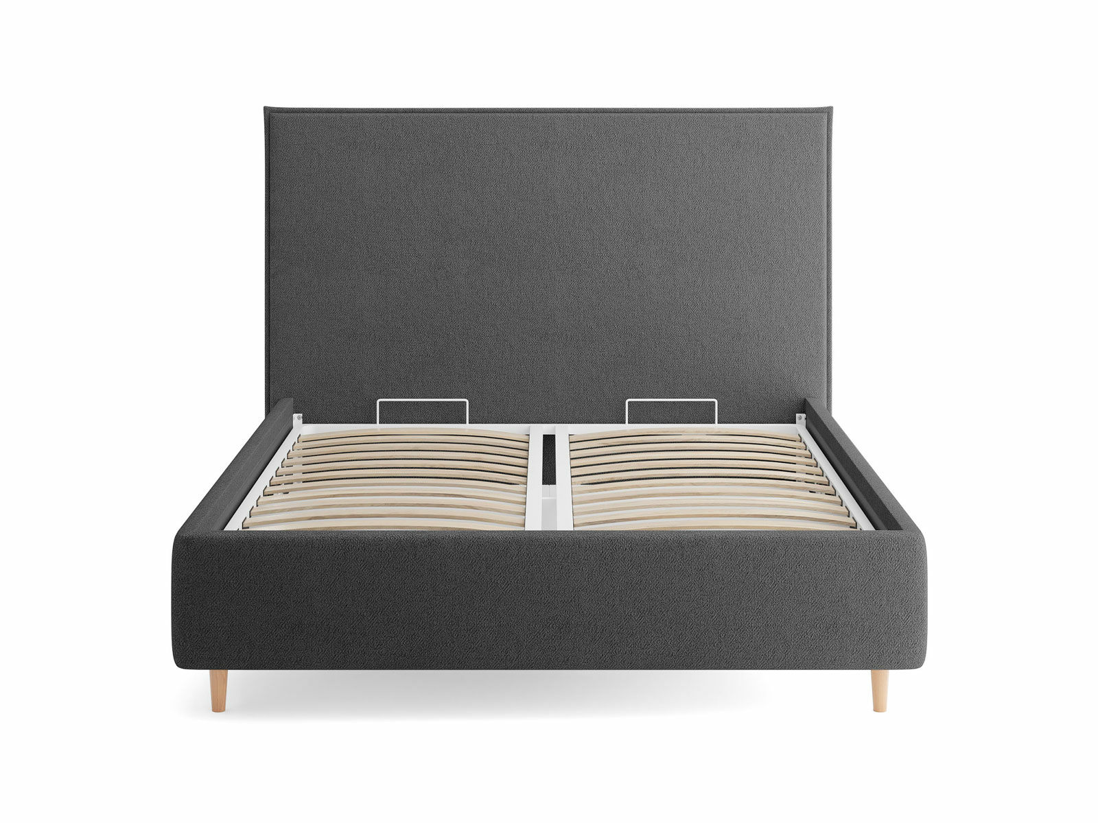 Кровать комплектуется металлическим основанием (без опор), которое имеет 13 рядов встроенных березовых ламелий на каждое спальное место, обеспечивая равномерное распределение нагрузки.