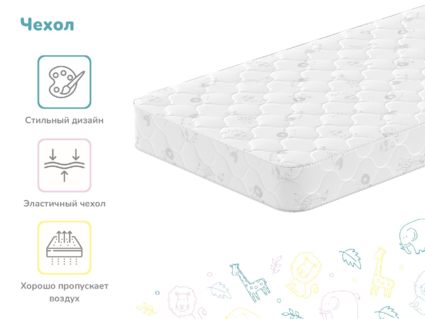 Чехол без молнии выполнен из простеганного трикотажа с детским рисунком.