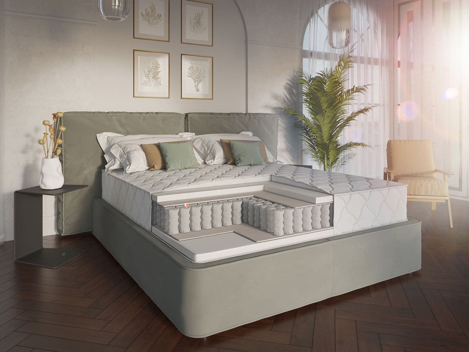 Basis - классический ортопедический матрас на основе блока независимых пружин c тремя дифференцированными анатомическими зонами. Каждый пружинный элемент в этом блоке размещен отдельно и не подвержен влиянию соседних, в результате чего возникает точечное воздействие на разные участки тела, отличающиеся по весу. Матрас обладает высоким ортопедическим эффектом, легко подстраивается под своего владельца, снимает мышечное напряжение и предотвращает появление проблем с позвоночником.