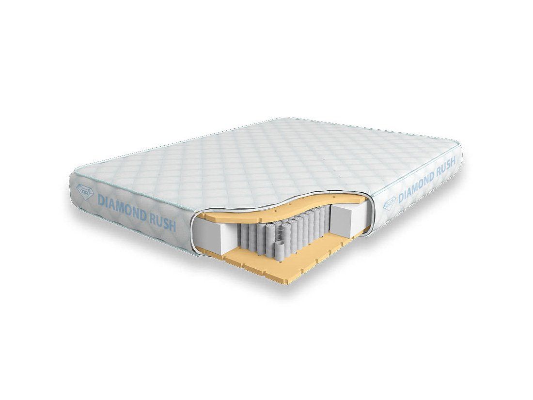 Матрас Diamond Rush Full Latex-2 1440DR имеет в своей основе независимый пружинный блок 1440, состоящий из пружин диаметром 3-4 см. В качестве настилочных слоев поверх пружинного блока используются листы перфорированного натурального латекса. Это один из самых мягких материалов, он позволяет ощутить на себе анатомический эффект.