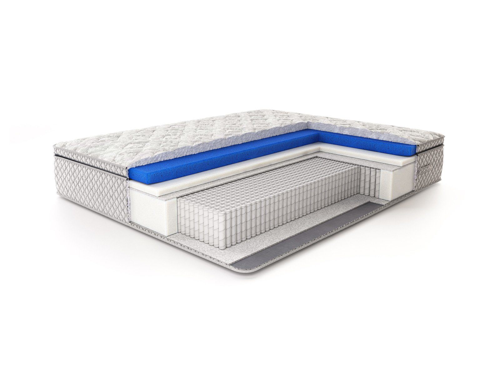 Роскошный рельефный чехол из жаккарда, простёганный по типу «слоёный пирог»: объёмное гипоаллергенное волокно холлкон 300 гр., ППУ 1 см, спанбонд — максимальный первоначальный комфорт. Чехол матраса несъемный.