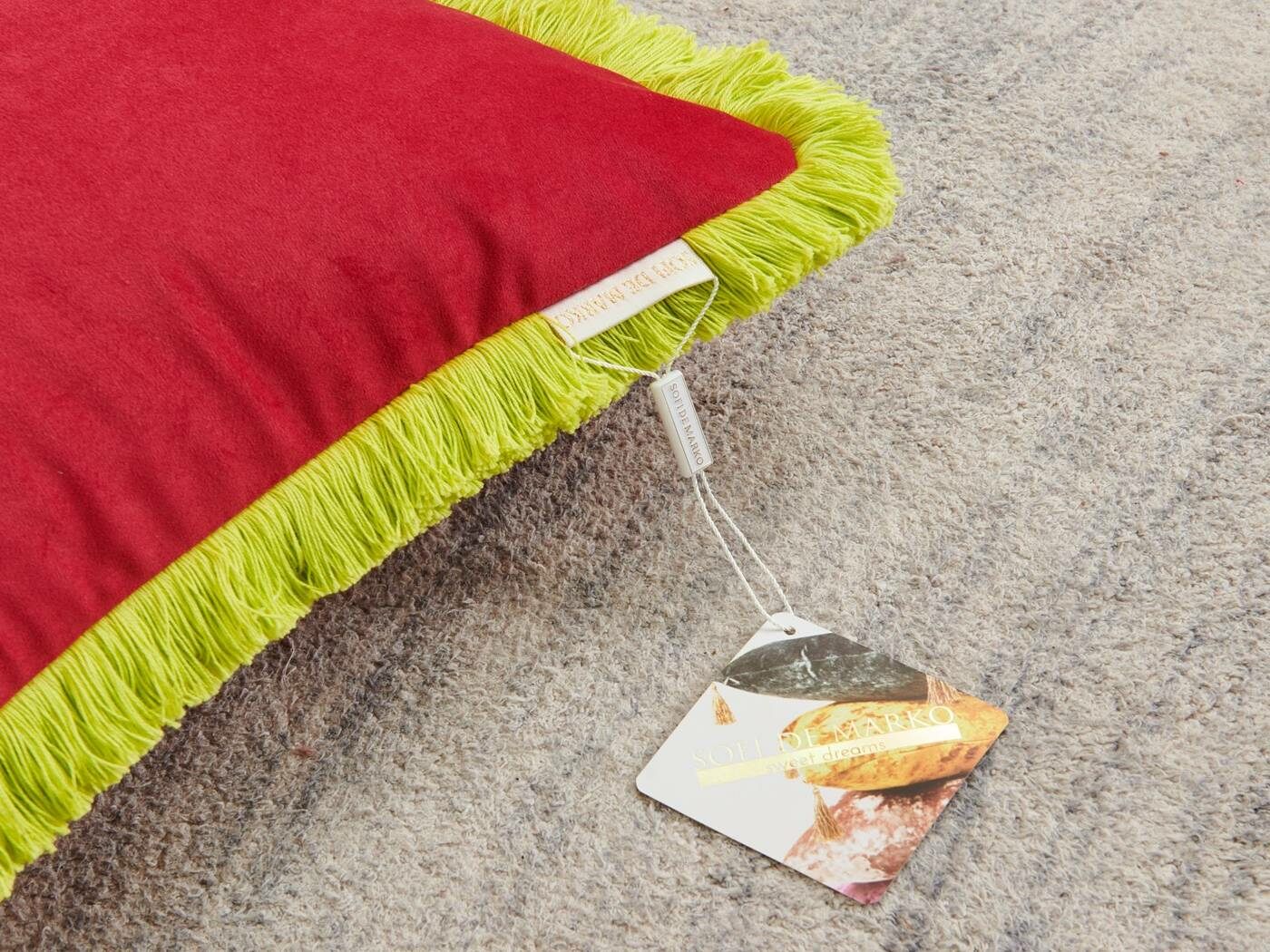 Коллекция пошита из мягкого и приятного на ощупь велюра плотностью 250г/м2. Наволочки с контрастной хлопковой бахромой добавят ярких акцентов и жизнерадостности в ваш интерьер. Большой выбор расцветок поможет расставить цветовой акцент и подчеркнет индивидуальность Вашей гостиной.