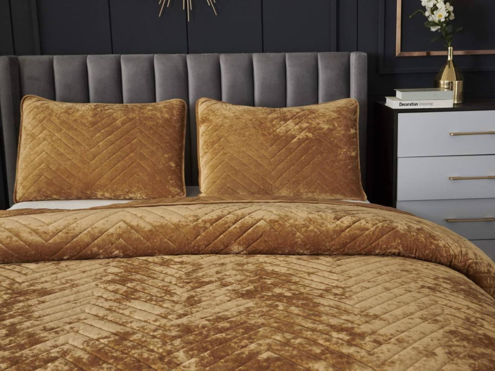Покрывала Фернанд выглядят как будто сошли с картин, изображающих королевские покои. Бархатную ткань начали изготавливать еще в Средние века, её использовали в оформлении дворцов и изготавливали плащи и головные уборы для знати. Теперь и вы можете прикоснуться к этой роскоши! Бархатная текстура приятная на ощупь, а из-за особого плетения ткани, игра света на ней выглядит благородно. Поэтому покрывало Фернанд создаст необычайно уютную атмосферу в вашей спальне. Цветовая гамма разнообразна и включает восемь благородных оттенков: капучино, бежевый, изумруд, горчичный, терракотовый, пепельная роза, серый, стоун. За покрывалом Фернанд легко ухаживать: стирка при температуре 30 градусов, вручную или в машинке. Важно хорошо просушить изделие! При правильном уходе вещь прослужит долгие годы не потеряв форму и цвет.