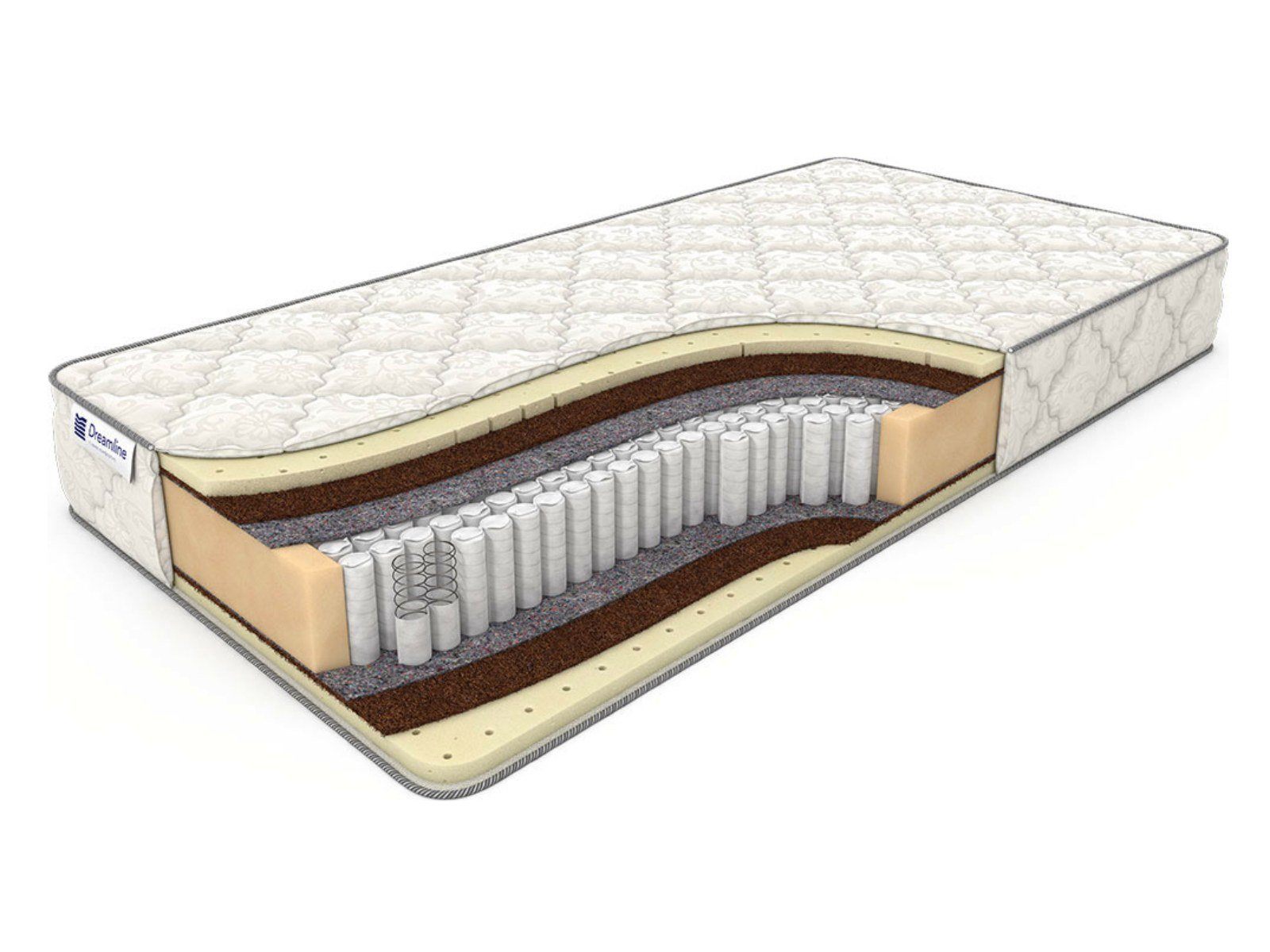 Матрас SleepDream Medium S1000 высотой 23 см имеет среднюю жесткость и способен выдерживать очень большие нагрузки (до 150 кг на спальное место). В основе матраса лежит блок с плотностью в 500 пружин на квадратный метр. Пружины независимые, то есть при давлении сжимаются только те, которые находятся в зоне воздействия, - это позволяет удерживать позвоночник в физиологически правильном положении. По обеим сторонам блок защищен прослойкой из натурального льноджутового волокна. Наполнением для матраса служат натуральный латекс и кокосовая койра (по слою с каждой стороны). Это классическое сочетание материалов, обеспечивающее матрасу упругость и комфорт. Чехол модели SleepDream Medium S1000 сшит из хлопкового жаккарда, простеган и наполнен объемным антиаллергенным холконом. В него по заказу можно бесплатно вшить смотровую молнию.