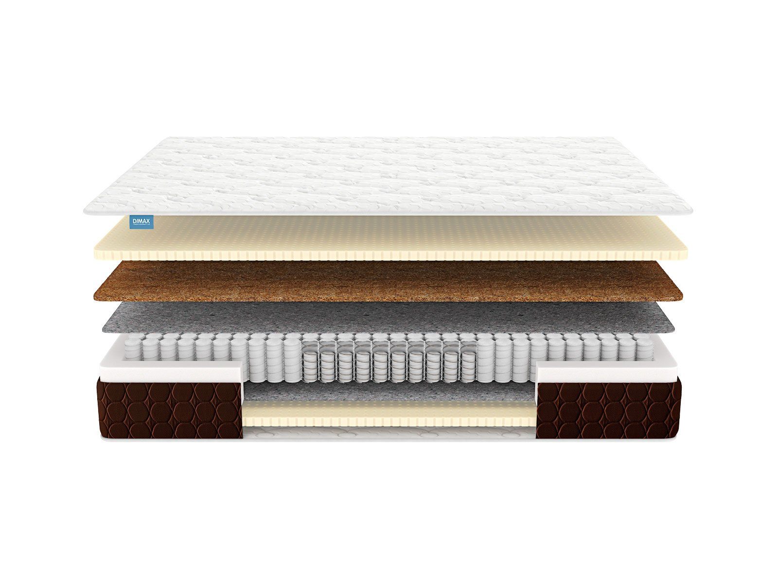 Димакс Твин Медиум Софт – это разносторонний ортопедический матрас высокой прочности с возможностью нагрузки до 170 кг на спальное место. Модель универсальна: если хочется более упругую поверхность — используйте сторону с кокосовой койрой, а для мягкого, «обнимающего» эффекта достаточно перевернуть матрас.
